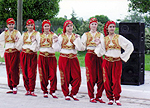 5月26日 昼 日本文化祭のワークショップ 私は日中時間があったので、アクヒサールの町を散歩する。落ち着いた町並み、出会う人たちがにっこり挨拶してくる。私も「メルハバ」と挨拶する。こんなひと時が海外を旅していて一番いいなと思うときだ。 夜 「アクヒサール文化会館」で舞台公演。 トルコでのステージにも少し慣れ、会場の雰囲気を味わいながら歌うことが出来た。地元の祭りのイベントが私たちの後に同じステージで行われることもあってか、後半頃には二階席もビッシリ埋まり、立ち見客も出て、会場入り口の扉も半開きで溢れんばかり。1000人くらいの観客だったかもしれない。私は歌い終わったあとの楽屋で、着物ショーに出演するトルコの女性たちと片言の英語で話し、みんなで記念撮影をし、同じステージをやってきたなぎさ太鼓や武術の人たちと和やかな時間をすごした。